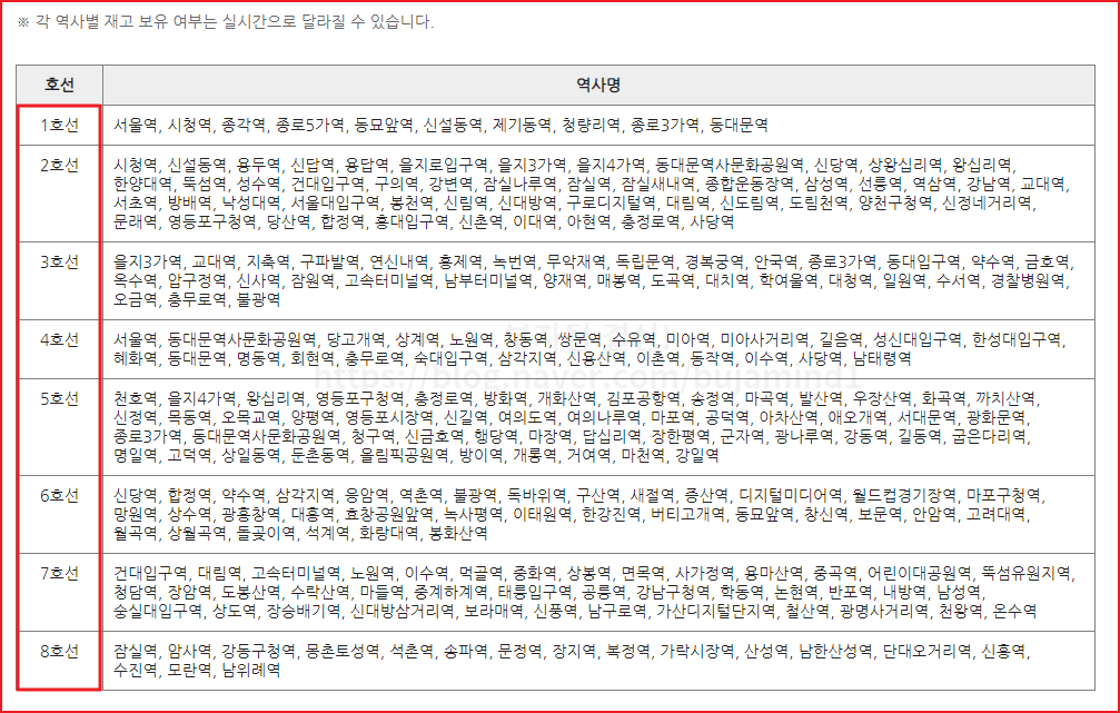 ▣ 구입가능한 지하철역 안내