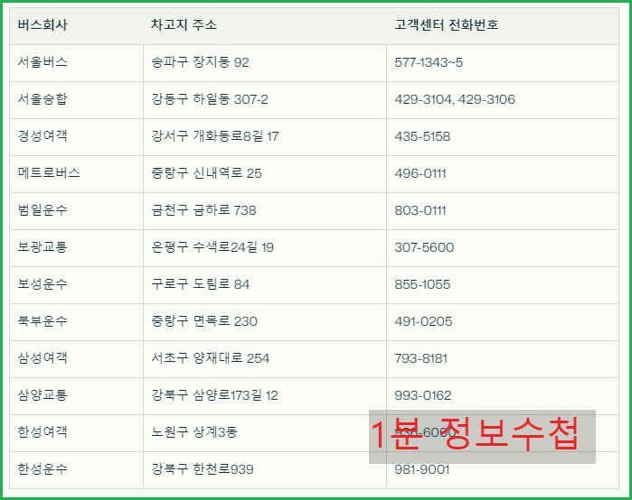 - 연락 방법: 버스 회사 고객센터 또는 영업소에 전화