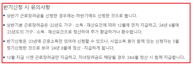 이번 근로장려금 신청기간은 반기신청기간으로 24년 3월1일부터 15일까지 약 2주간에 걸려 신청접수되며 대상자에게는 별도의 안내문이 발송됩니다.